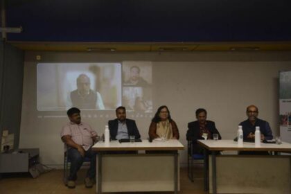 On screen (clockwise): Kunal Satyarthi (IFS, Joint Secretary, MoRD), Aniruddh Sheth (CEP), From (L-R): Subrata Singh (FES), Manish Parmar (ISRO-SAC), Archana Chatterjee (IUCN/FLR), Purnendu Kavoori (C...