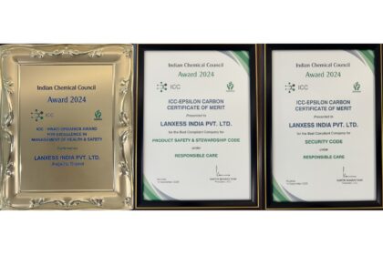 Mumbai (Maharashtra) [India], November 7: LANXESS India has won three prestigious industry recognitions from the Indian Chemical Council (ICC) which includes ICC – Vinati Organics Award for Excellence...