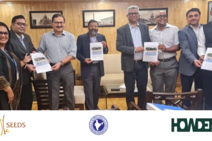 Shri Krishna S. Vatsa, Shri Safi Ahsan Rizvi, Dr. Manu Gupta, and Aditya Verghese at the launch of the pilot parametric insurance to build resilience to disasters. New Delhi [India], November 4: SEEDS...